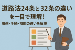 【比較】道路法24条と32条の違いを一目で理解!用途・手続・期間の違いを解説